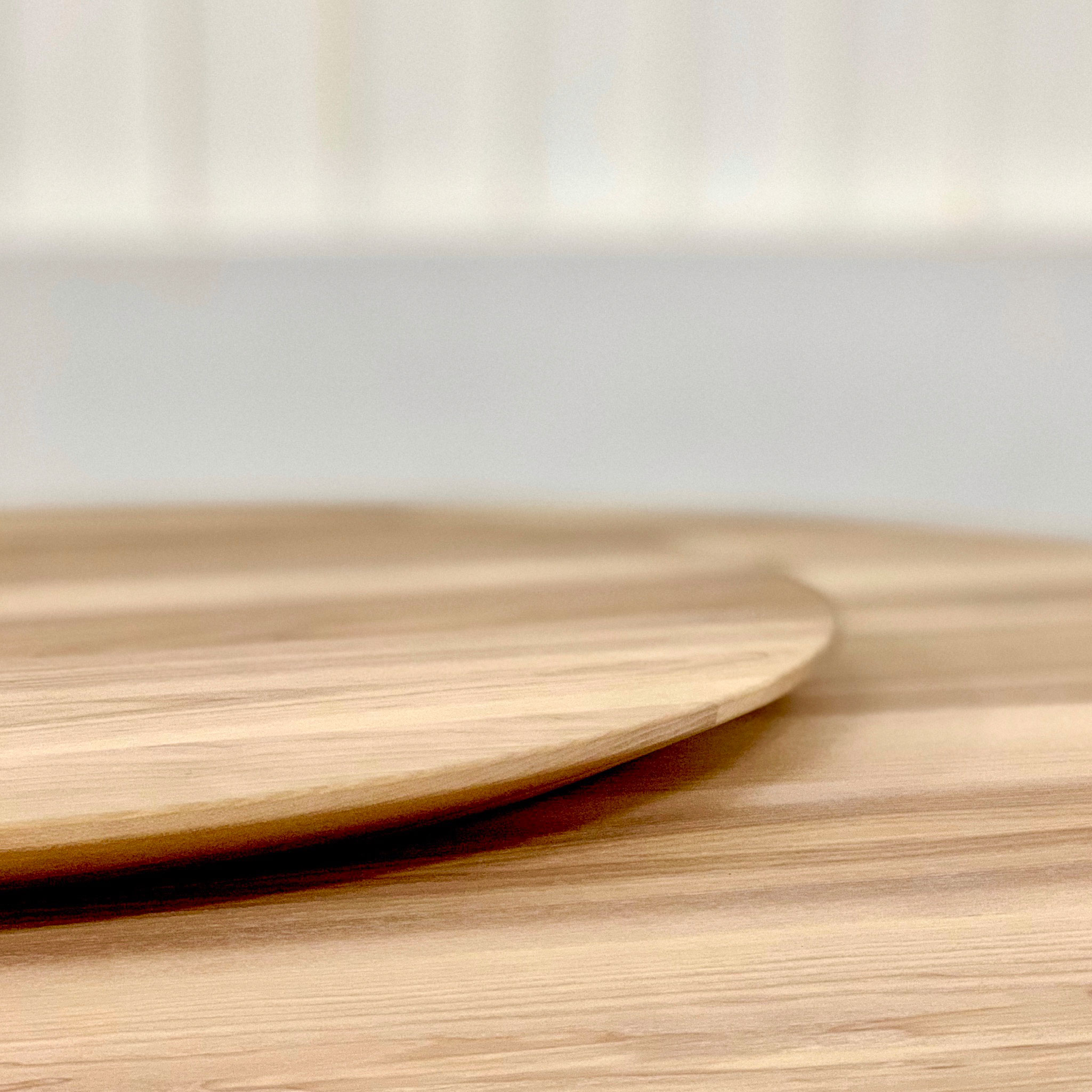 CREO Tisch mit Eleganz Die runde Form aus Massivholz wirkt mit ihrer warmen Ausstrahlung besonders einladend und ist wie geschaffen für ein lockeres Abendessen in Gesellschaft. Die Mittelsäule mit trapezförmiger Geometrie unterstreicht die visuelle Wahrnehmung und bietet viel Beinfreiheit. Durch die klaren Linien strahlt dieser Tisch Eleganz und Stil aus. Der Drehteller Lazy Susan auf der 160 oder 180 cm großen Massivholztischplatte ist ein dekoratives und funktionelles Objekt.